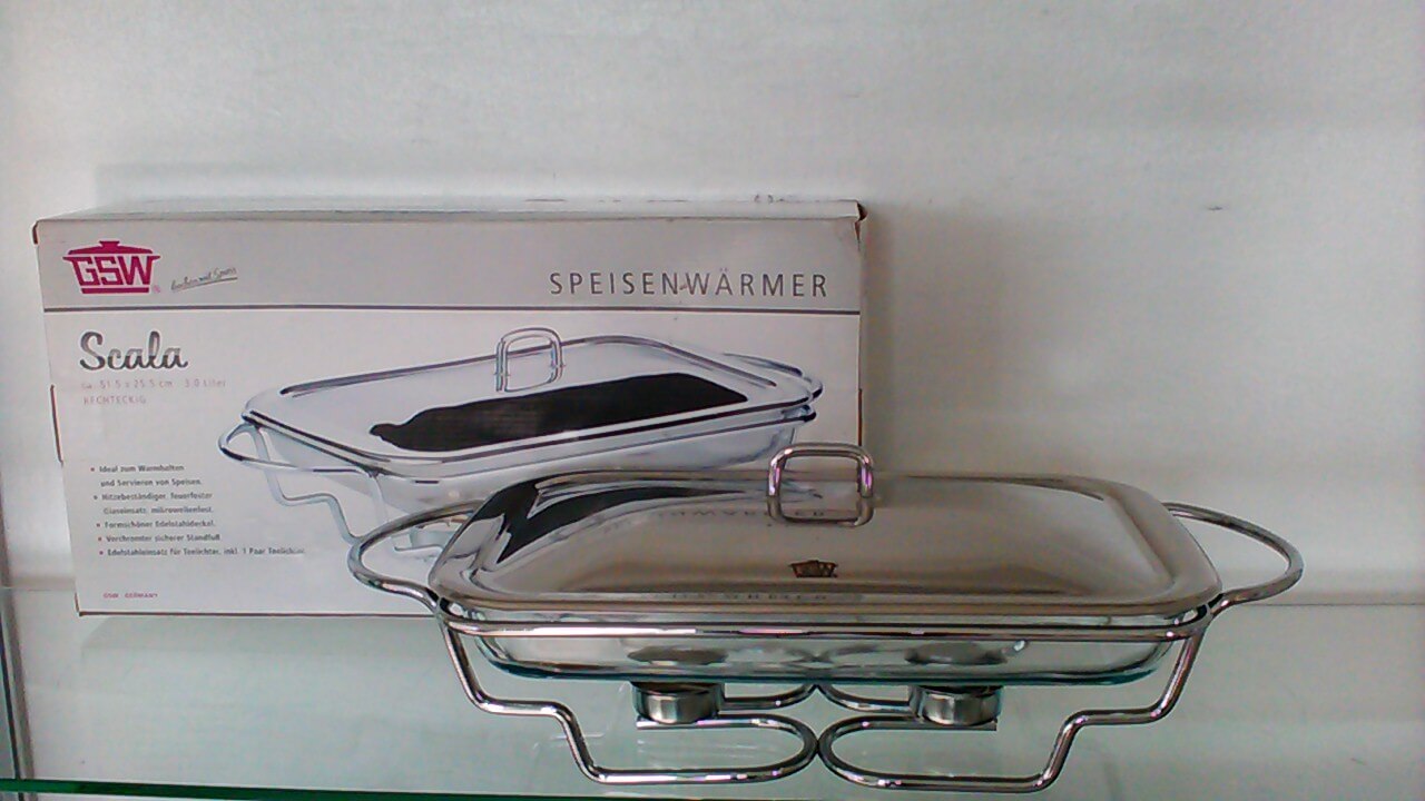 Chauffe plat rectangle GSW avec plat en verre et couvercle inox.